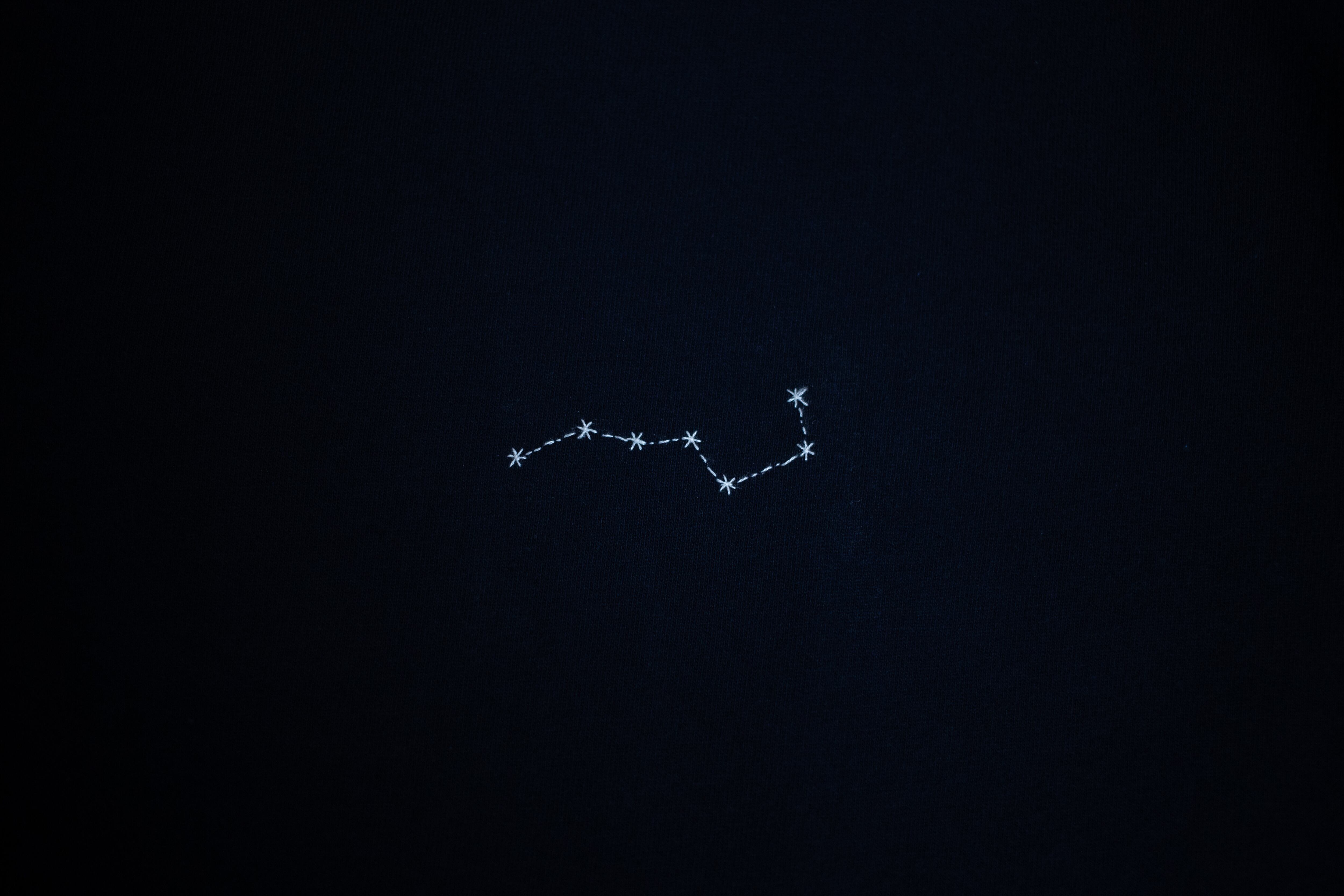 均一的であることよりも手刺繍ならではの魅力を感じていただけたらと思い、星の形や星をつなぐランニングステッチの長さはあえて揃えず、ランダムに刺しています。