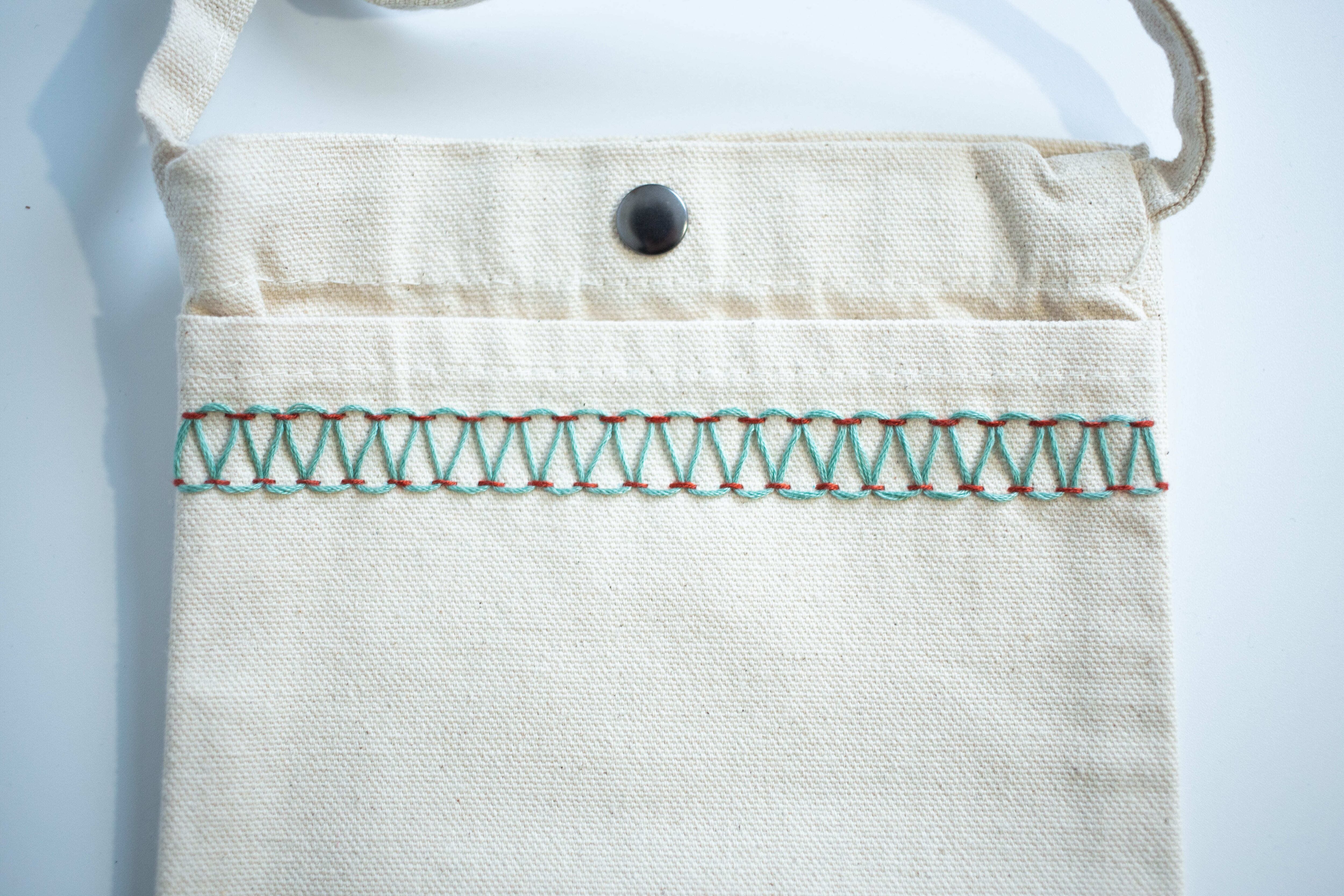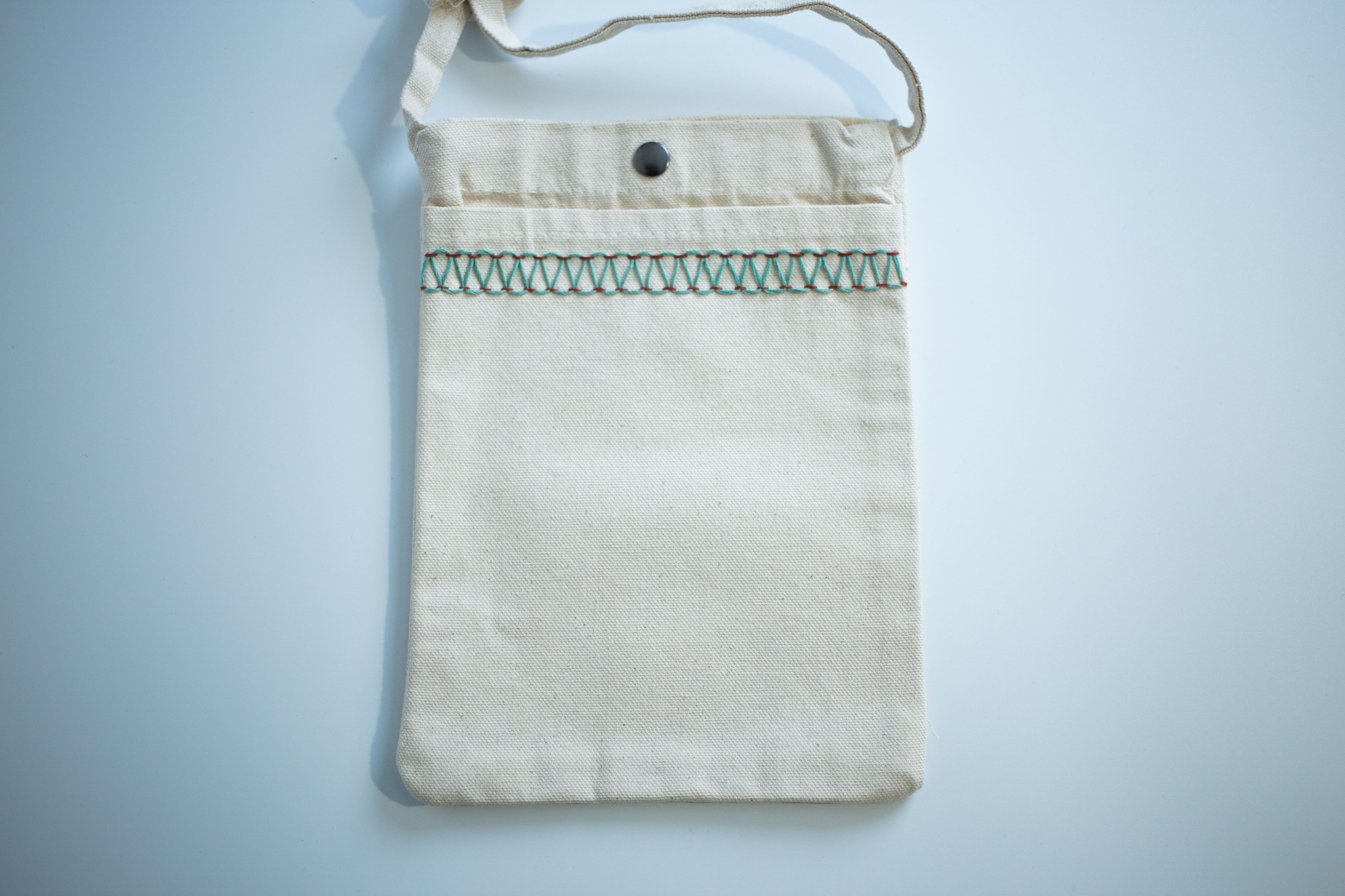ステッチ装飾が施されたサコッシュ。