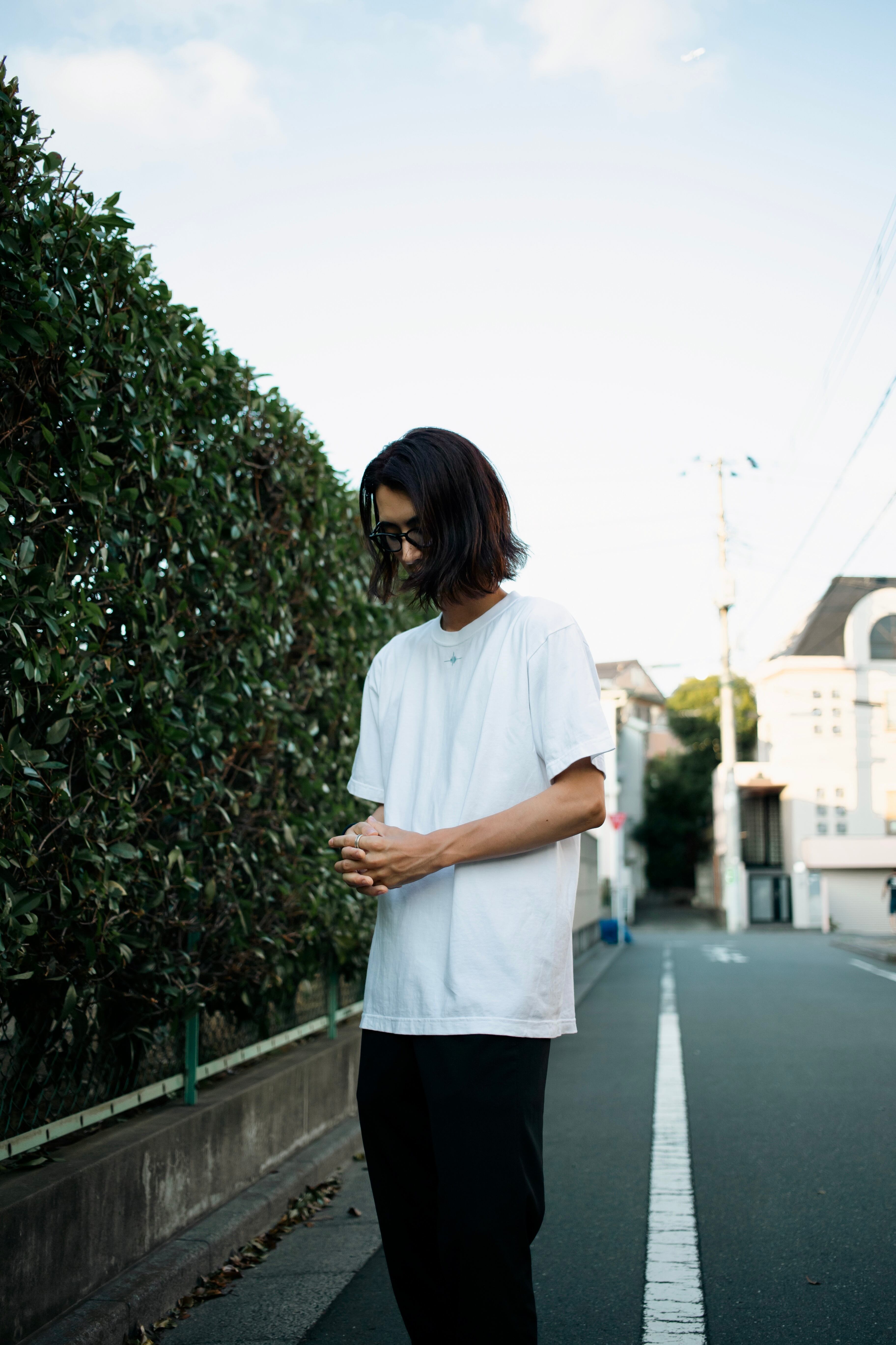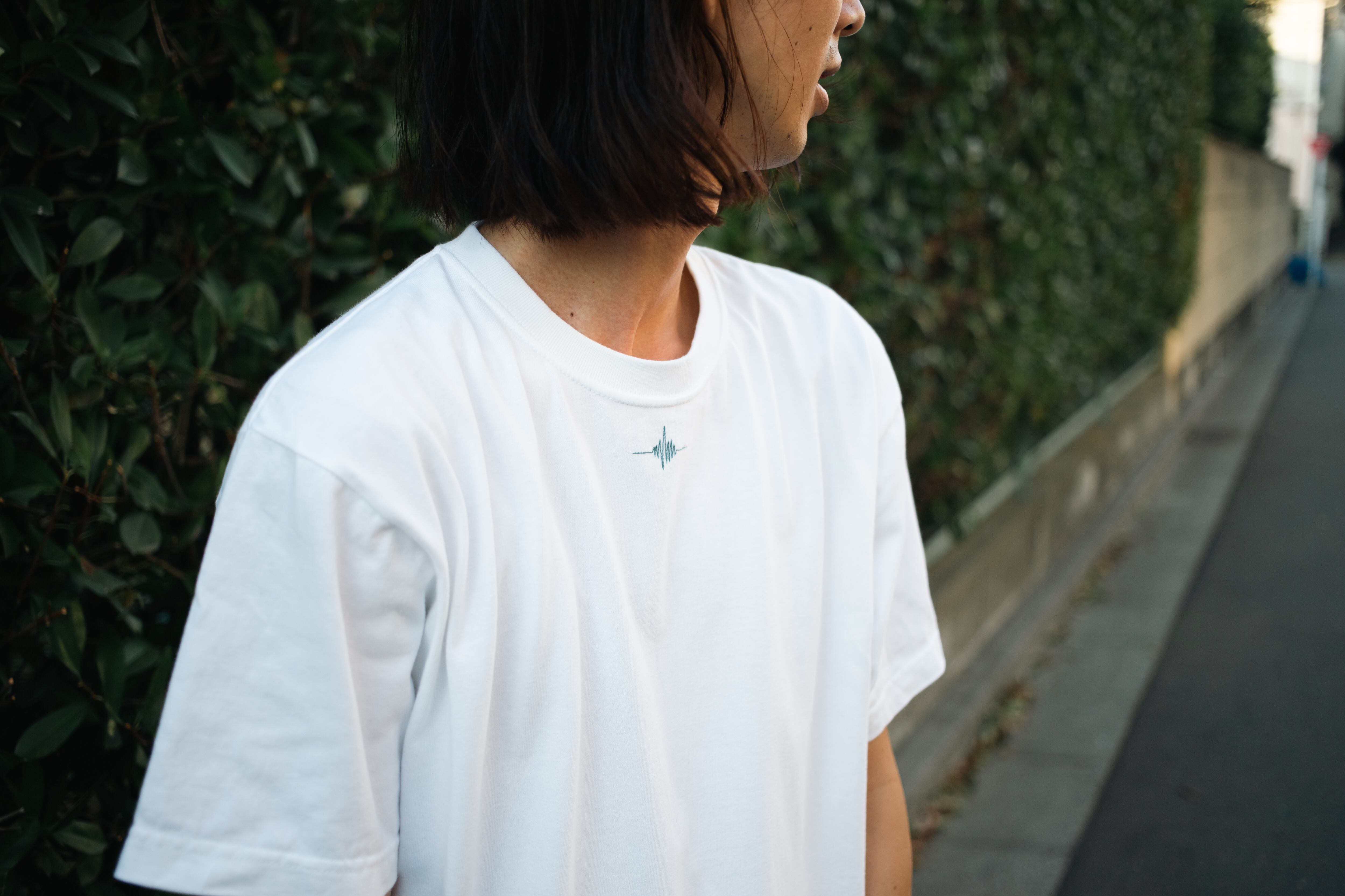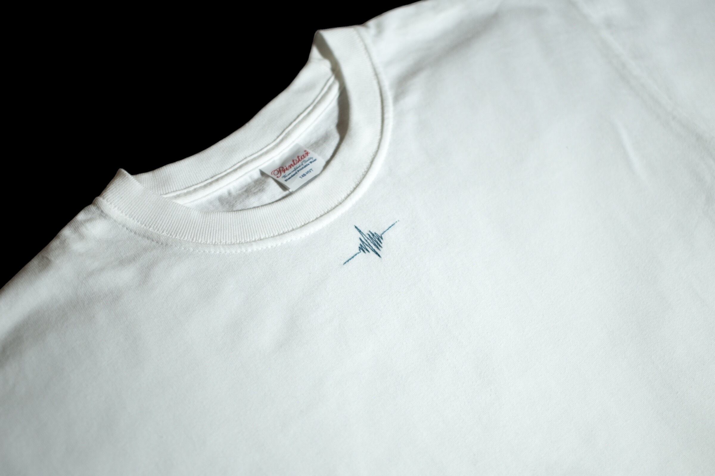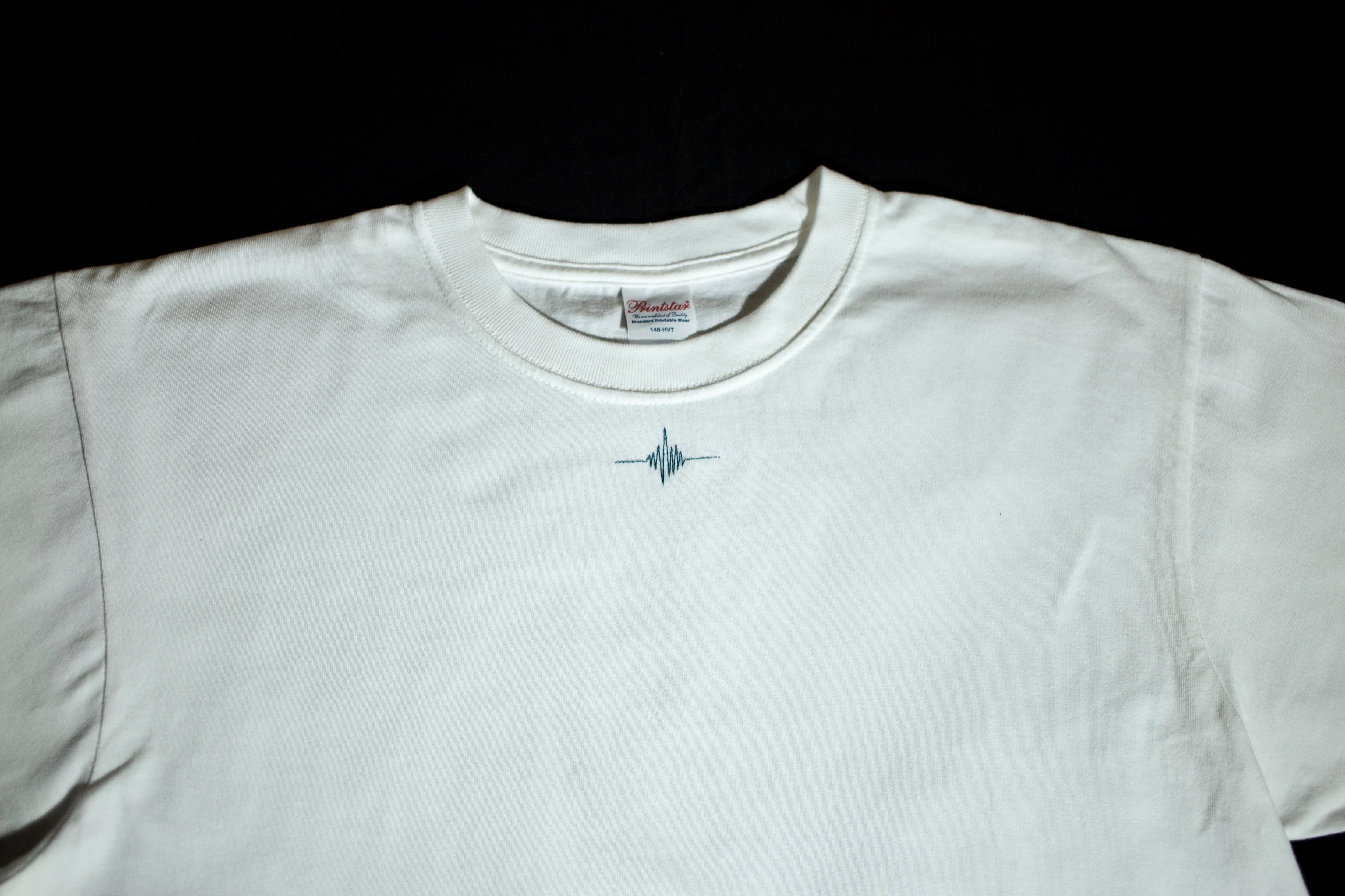 ノイズ波形・心電図のようなワンポイント刺繍が入ったTシャツ。